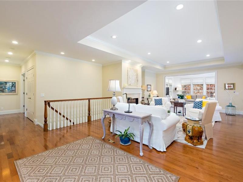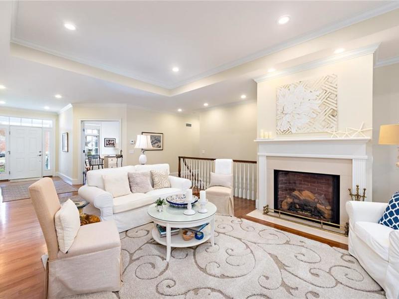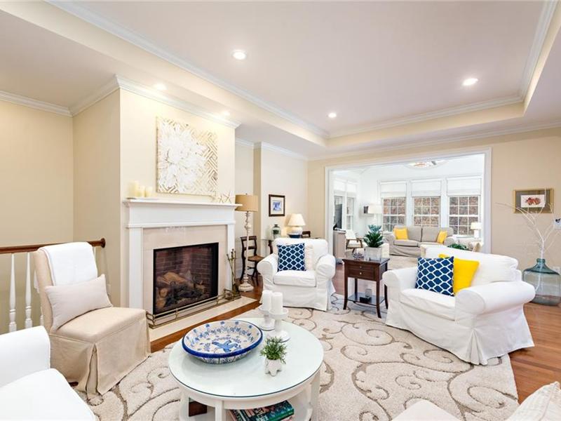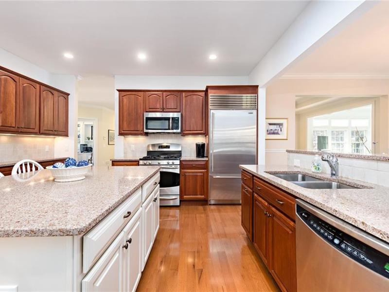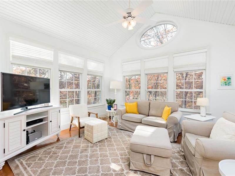 The house features 2 bedrooms, three baths, a large and sunny office, a main bedroom suite, a guest bedroom suite, a bright and cheery sunroom with a vaulted ceiling, a large and inviting Living Room with tray ceilings and an elegant gas fireplace, a spacious kitchen with a center island, a dining room and laundry room all on the main floor!